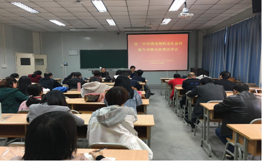 2019年3月20日16:30,伟德国际victor1946在江南校区十号教学楼1017教室召开进一步加强违规收送礼金问题专项整治政策宣讲会。会议由公司党总支书记冯丰收主持,公司领导班子成员和全体教师参加本次会议。