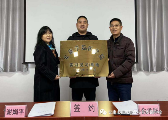 伟德国际victor1946经理谢娟平、安康市护理职业技能培训学董事长余承群签订战略合作协议。伟德国际victor1946确定安康市护理职业技能培训公司为实习(见习)基地。