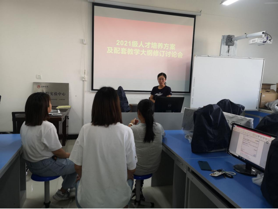 陈玲介绍了此次修订的基本原则和修改任务,本次修订集中在培养目标和毕业要求、“两个支撑矩阵”及配套教学大纲上面,并针对人才培养方案和教学大纲中的问题进行了提问和探讨。各位任课教师纷纷就培养目标、毕业要求、课程体系、专业核心课程、配套教学大纲的编写等内容提出宝贵意见。