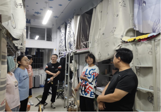 进入宿舍后,同学们受宠若惊,两位老师对同学们表达了节日的祝福并与他们亲切交谈。刘连德一一了解同学们的家乡,询问他们这几天假期如何度过以及之后几天的安排。得知部分同学有意向去游玩时,刘连德推荐了周边景点。刘连德强调长假期间同学们更应当注意劳逸结合以及安全问题,对于只身一人留宿同学,两位老师叮嘱他们可以同其他宿舍一起结伴度过,让假期不孤单。