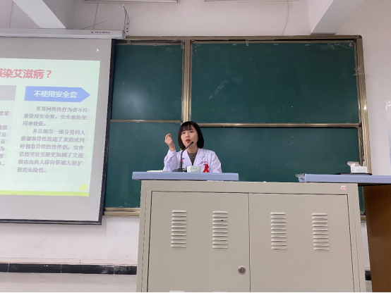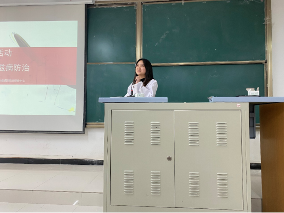 马倩进行了《生命至上,终结艾滋,健康平等》主题防治讲座,详细介绍了艾滋病相关知识,使师生们对艾滋病的感染条件、传播途径、人体的感染过程有了更加全面的认识。同时倡导同学们要洁身自好,提高健康意识,远离艾滋病毒。最后,龚晨为大家讲解冬季传染病预防知识,介绍了冬季高发的传染病,如流感、流行性出血热、水痘,并提醒同学们在日常生活中要注意个人卫生,加强预防保健。