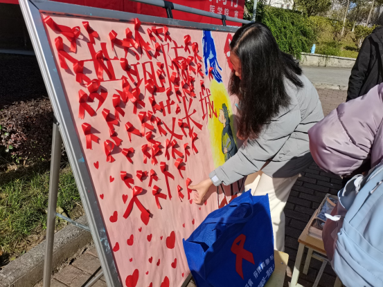 在“共筑防艾长城”宣传活动上,同学们在便利贴上写下自己对艾滋病的认识以及对艾滋病患者的态度,同时亲自制作红丝带粘贴在展板上。在讲座上,2021级康复治疗学1班赵红光作为员工代表,为我们讲述了艾滋病的现状并讲解感染艾滋病毒后的72小时黄金自救期知识。