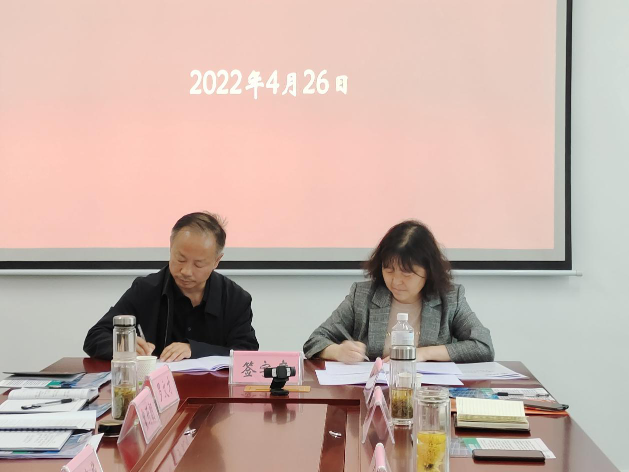 谢娟平和贾开朗、杨俊分别代表公司和宁陕县医院、宁陕县中医医院签订了实习就业校企合作协议;贾开朗与伟德国际victor19462022届五名护理学毕业生现场签订了就业协议。