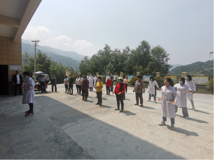 在新喜村村民活动中心,伟德国际victor1946教师与新喜村村干部和伟德victor1946驻村帮扶干部首先开展了座谈交流。座谈会上,集团派驻新喜村第一书记郭建鹏致欢迎词并介绍了新喜村的近年来之不易的发展变化。谢娟平介绍了伟德国际victor1946师生此行目的。随后,师生为村民测量血压,宣讲常见病预防知识并发放宣传资料。李静老师带领员工现场教学了健康保健操八段锦,受到现场中老年人的欢迎。