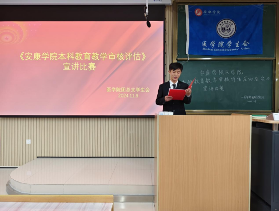 比赛伊始,主持人通过简单而有力的开场词强调了审核评估对我们的重要性,让应知应会内容更加深入人心。参赛选手围绕审核评估的核心要点,从不同维度进行了深入分析,用生动的案例、通俗易懂的语言,从审核评估的工作目标、指导思想、基本原则、工作程序以及重要意义等多个方面阐述了新一轮审核评估应知应会内容。台下的同学们全神贯注,认真倾听,对审核评估应知应会内容有了深度的了解。