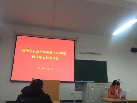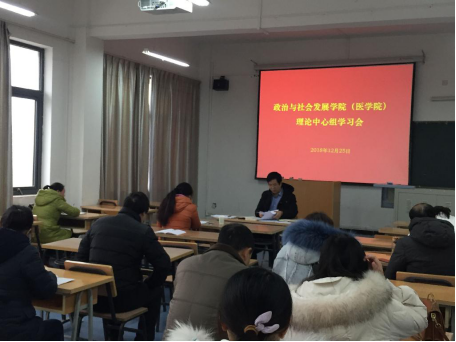 2018年12月25日下午14时30分,伟德国际victor1946、政治与社会发展公司理论中心组成员在江北校区1514教室举行理论学习会,会议由公司党总支书记冯丰收主持。
